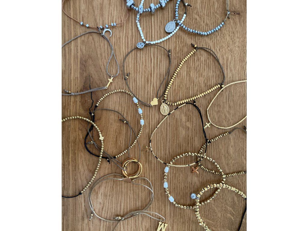 Materiál: ch.ocel, 0,8mm nylonová šňůrka, 0,2mm hematit. broušené korálky.